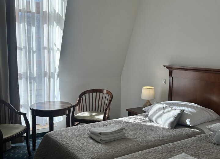 Do Państwa dyspozycji oddajemy pokoje 1-osobowe i 2-osobowe ( w tym także pokoje Superior) oraz pokoje rodzinne (typu studio). Wszystkie pokoje wyposażone są w łazienkę z prysznicem, suszarkę do włosów, ręcznik, TV, telefon, internet - wifi. Część pokoi posiada balkon oraz klimatyzację. Wystrój jest doskonałym połączeniem zabytkowego klimatu z wygodą użytkowania, które sprosta najbardziej wymagającym gustom.
